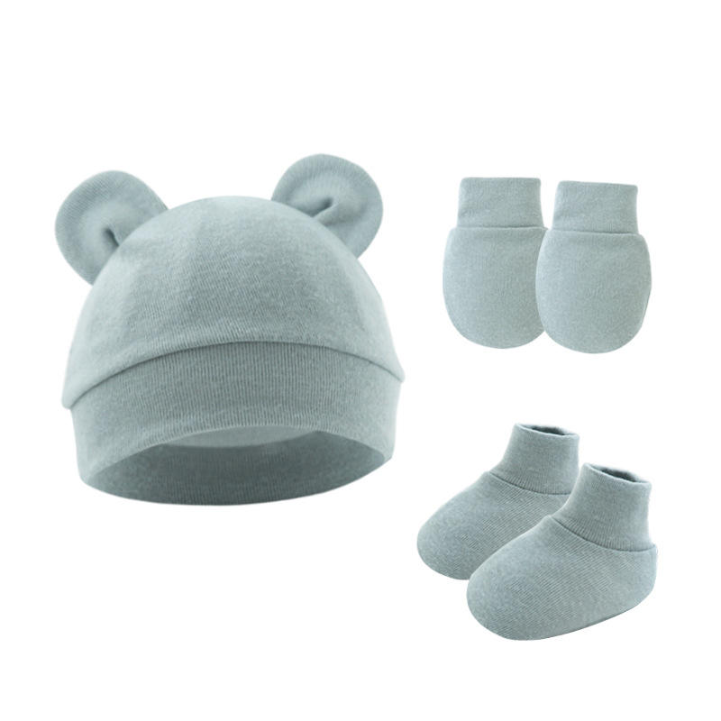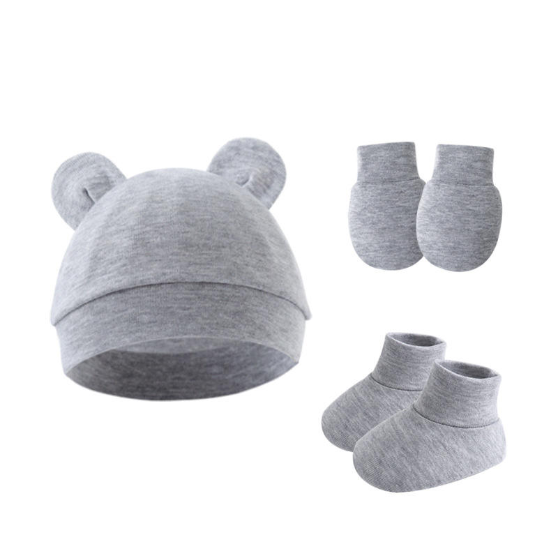 Conjunto de 3 Piezas de Color Puro para Bebé: Gorro con Orejeras, Guantes y Cubrepiés para 0-6 Meses, para Uso Casual, para Comercio Exterior
