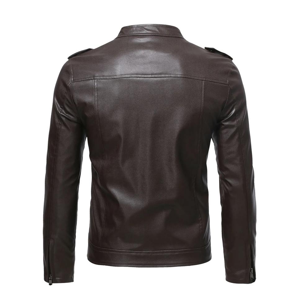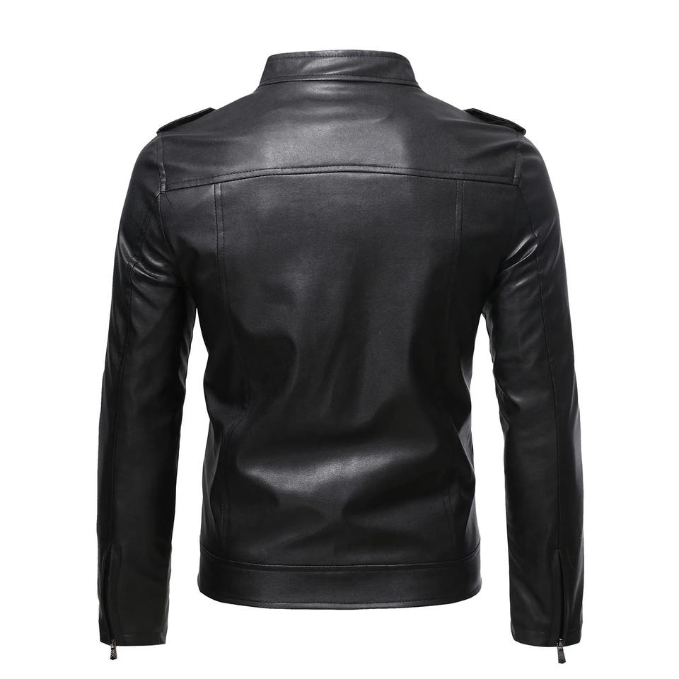 Chaqueta de Cuero de Piel de Oveja para Hombre, Estilo Casual de Negocios, Invierno, Manga Larga, Color Sólido, Cierre Diagonal, Transpirable y Ecológica