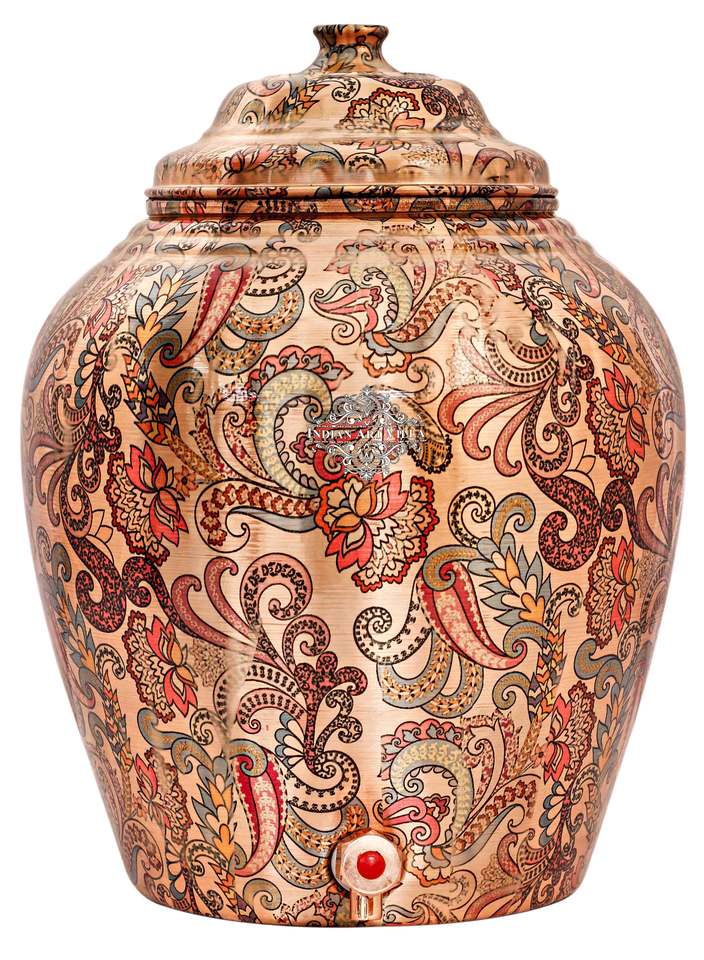 IndianArtVilla Dispensador de agua de melocotón ligero de diseñador de cobre puro-Almacenamiento y bebida, 10 L