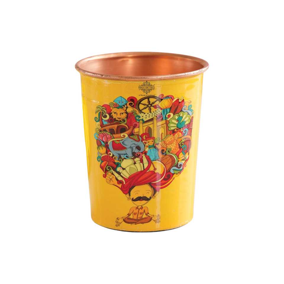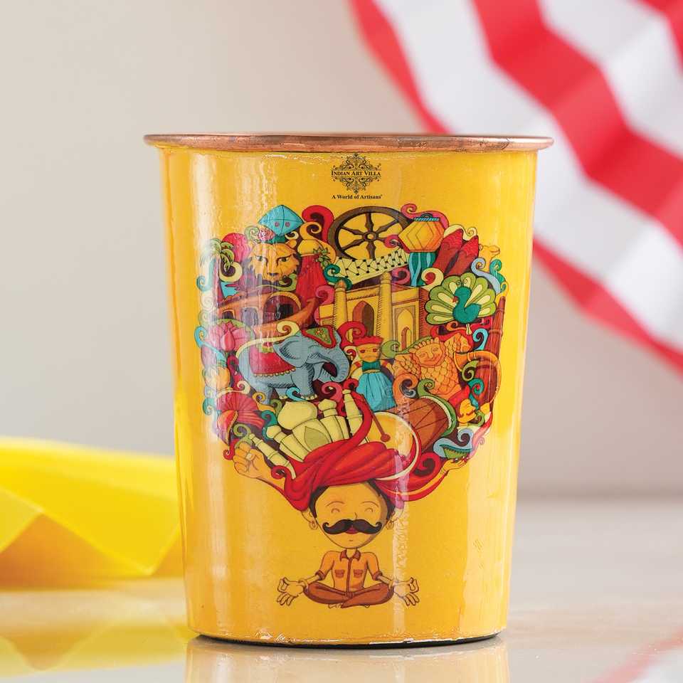 Vasos de Cobre Puro con Diseño Rajasthani Meena Padharo Mhare Desh, Estilo Oriental, para Restaurantes y Regalos