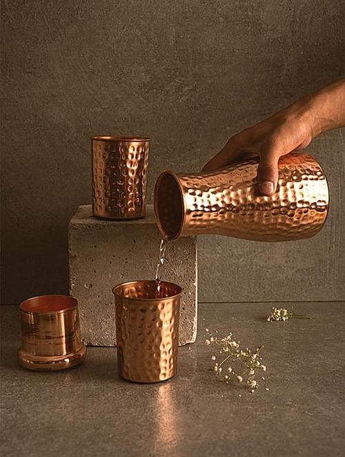Botella de Agua de Cobre Puro Dorado Clásica de Gran Capacidad, Antiderrames, 250 ml, Tapa de Empuje y Tirar, Apta para Alimentos, Apta para Lavavajillas, Hecha a Mano, Martillada
