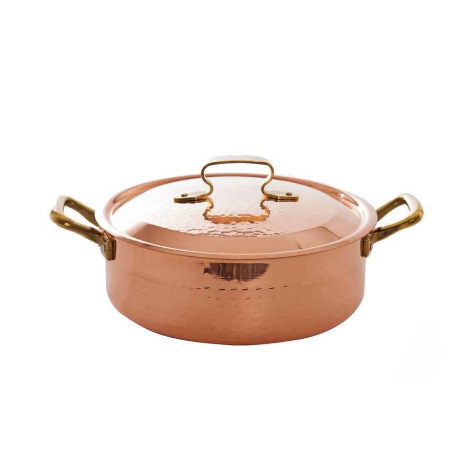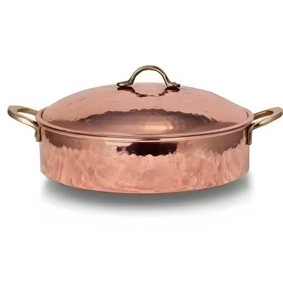 Olla de Cobre Puro Hecha a Mano con Tapa, Cacerola Tradicional de Cobre con Asas de Latón para Cocina Profesional