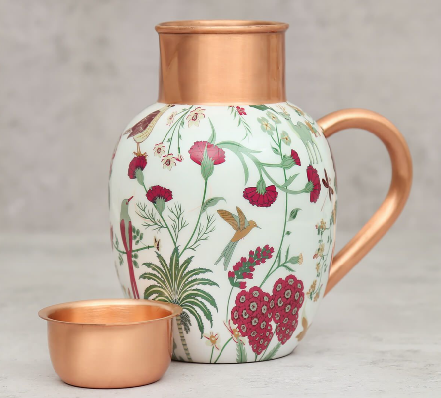 Jarra de cobre puro Diseño impreso Calidad superior Jarra de cobre puro de metal de gran tamaño para uso en agua potable para gimnasio y bodas