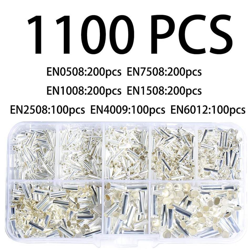 Terminales de Cobre Puro para Conexión en Línea, 1100 Piezas en Caja, Terminales de Cable Prensados en Frío para Instalación de Cercas