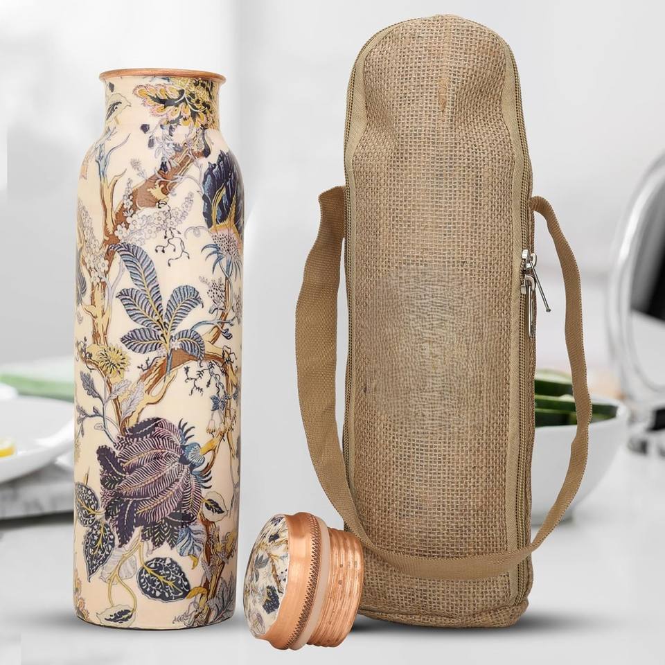 Botella de Agua Meenakari de Cobre Puro, Botellas Meenakari a Prueba de Fugas de 950 ml, Diseño de Arte Tradicional de Cobre Puro, Botella de Bienestar Diario