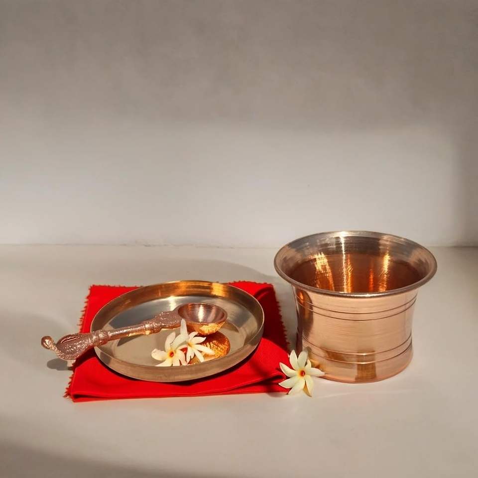 Juego de Panchapatra de Cobre Puro con Cuchara, Panch Patra y Achmani para Puja, Panchapatra Tradicional de Cobre para el Hogar, Templo, Rituales Diarios