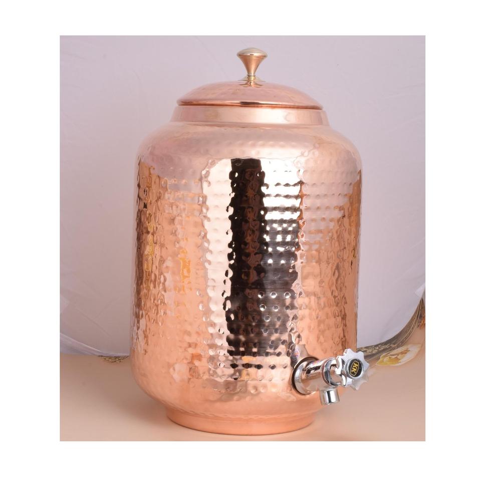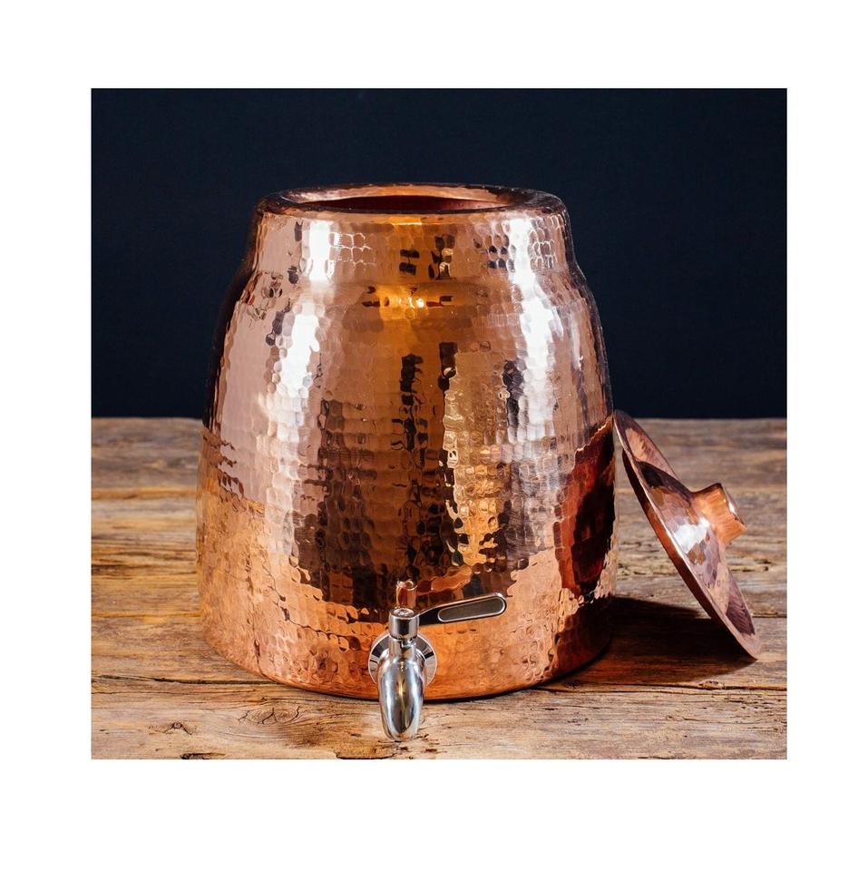 Jarra dispensadora de agua de cobre puro con soporte de madera y tapa Ideal para oficina, hogar, Hotel, Ayurveda y uso diario y saludable