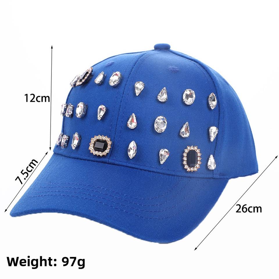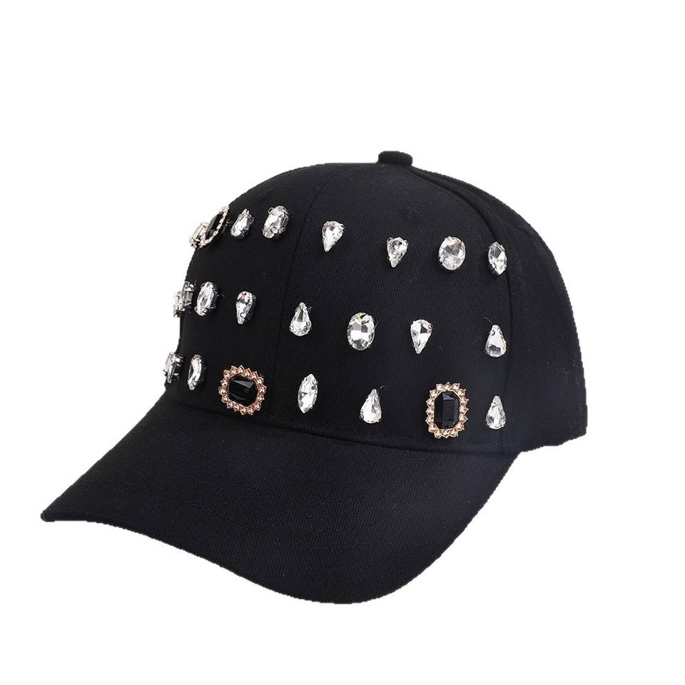 Gorra de Lona Ajustable de 6 Paneles de Algodón Puro con Parte Superior Rígida, Pedrería de Alta Calidad, Diamantes Hechos a Mano, Estilo Vintage de Lujo