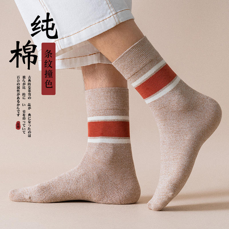 Pure Cotton Crew Socks Striped Color Block Breathable Daily Casual Men's Socks