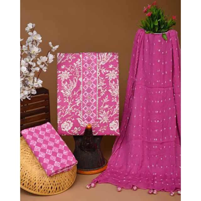 Traje de algodón pura gasa dupatta con zari gotapat