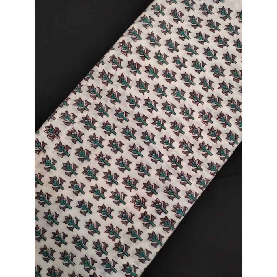 Tela estampada a mano de algodón puro con base blanca cardada e hilo peinado para decoración del hogar e interlineado de La India, tela de algodón