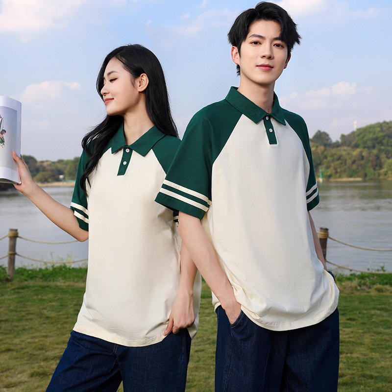 Pure Cotton Raglan Polo Shirt Short Sleeve Drop Shoulder Daily Wear Uniform Customizable