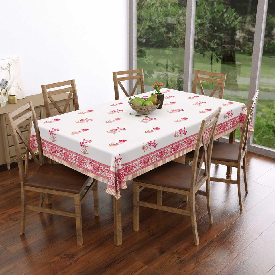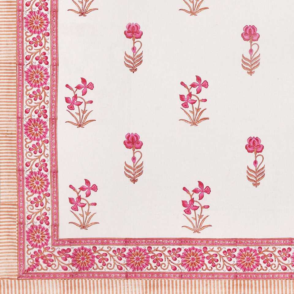 Mantel de algodón puro Rajasthani con estampado de bloques a mano en rosa melocotón con diseño floral para hoteles y bodas