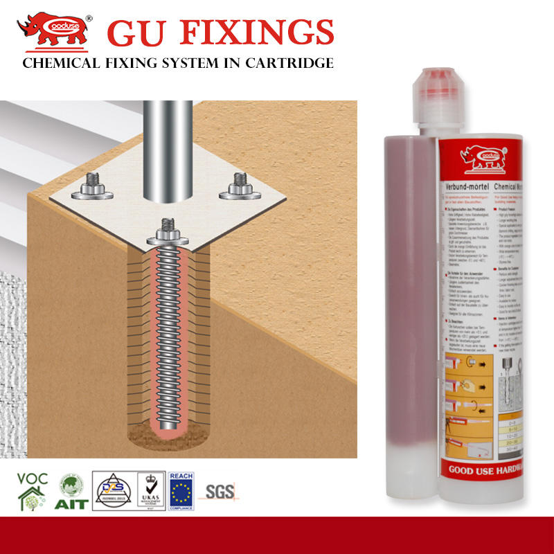 Adhesivo de Cartucho de Epoxi Puro de Alta Adherencia GOOD USE GU-500 para Anclaje en Concreto, Fijación de Varillas de Carga Pesada, Adhesivo Permanente