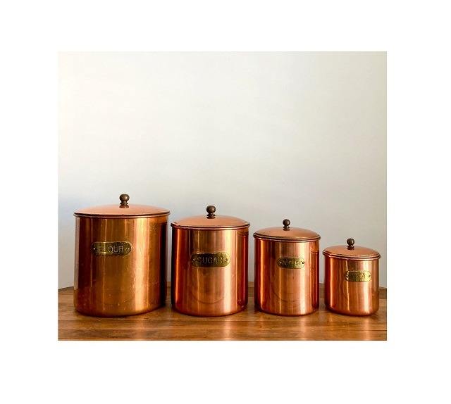 Juego de 4 botes grandes de forma redonda de diseño antiguo hecho a mano puro con diseño premium para contener azúcar, etc.