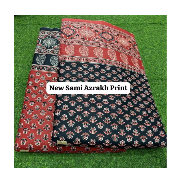 Tela de Algodón Indio Puro con Estampado Sami Azrakh, Diseño Tradicional Hecho a Mano, Textil Suave y Transpirable para Vestidos y Manualidades