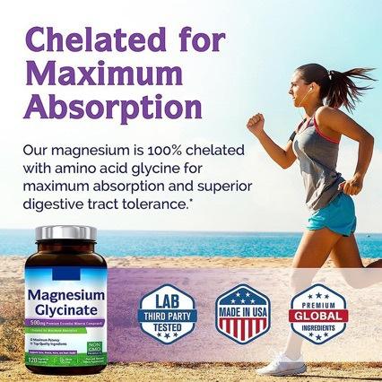 Cápsulas de Glicinato de Magnesio Puro, 120 Unidades, Quelado con Glicina para una Máxima Absorción, Probado por Terceros, Hecho en EE. UU., OEM