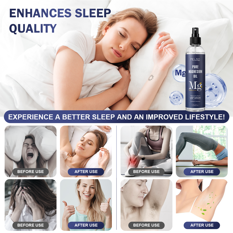 Spray de aceite de magnesio puro para masajes corporales y cuidado de la piel, grado USP, cloruro de magnesio natural, aceites corporales calmantes y reconfortantes para mujeres