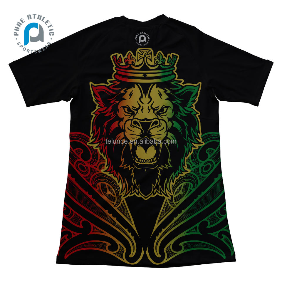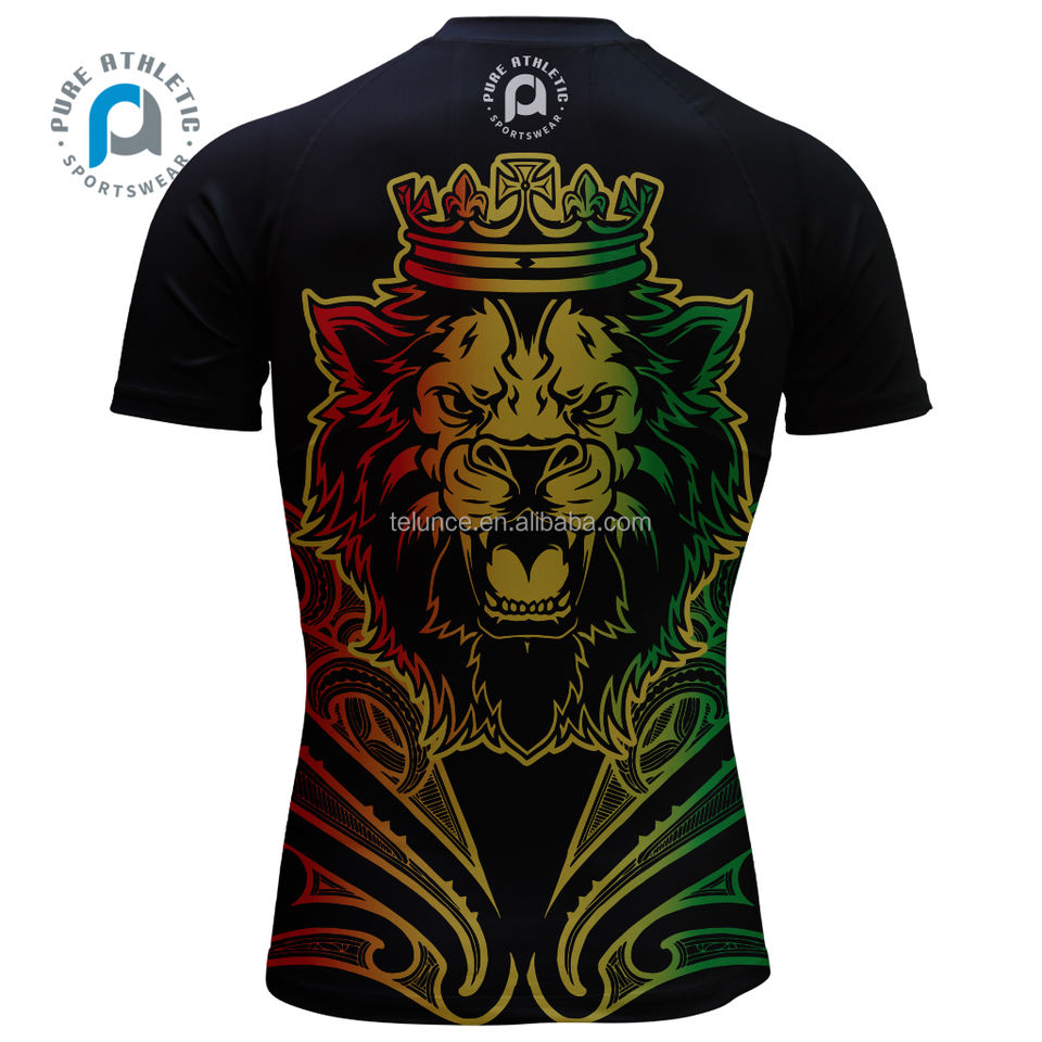 Pure Men's Sustainable Custom Quick Dry Rasta Maori Rash Guard para hombres Reggae Lion Compresión Camiseta de manga corta Tatuaje