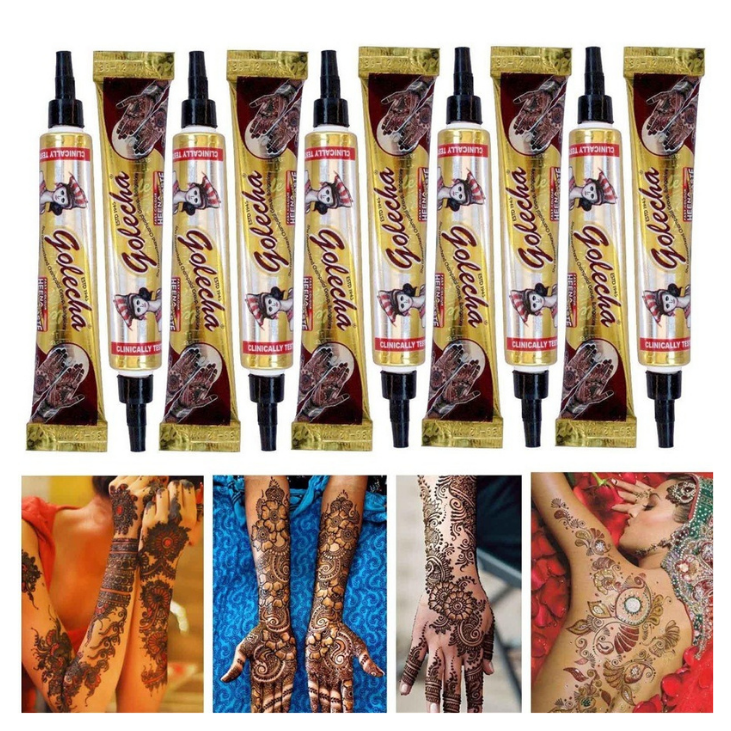 Empaque:12 conos de henna y 10 tubos de henna por paquete, 60 unidades/CTN
