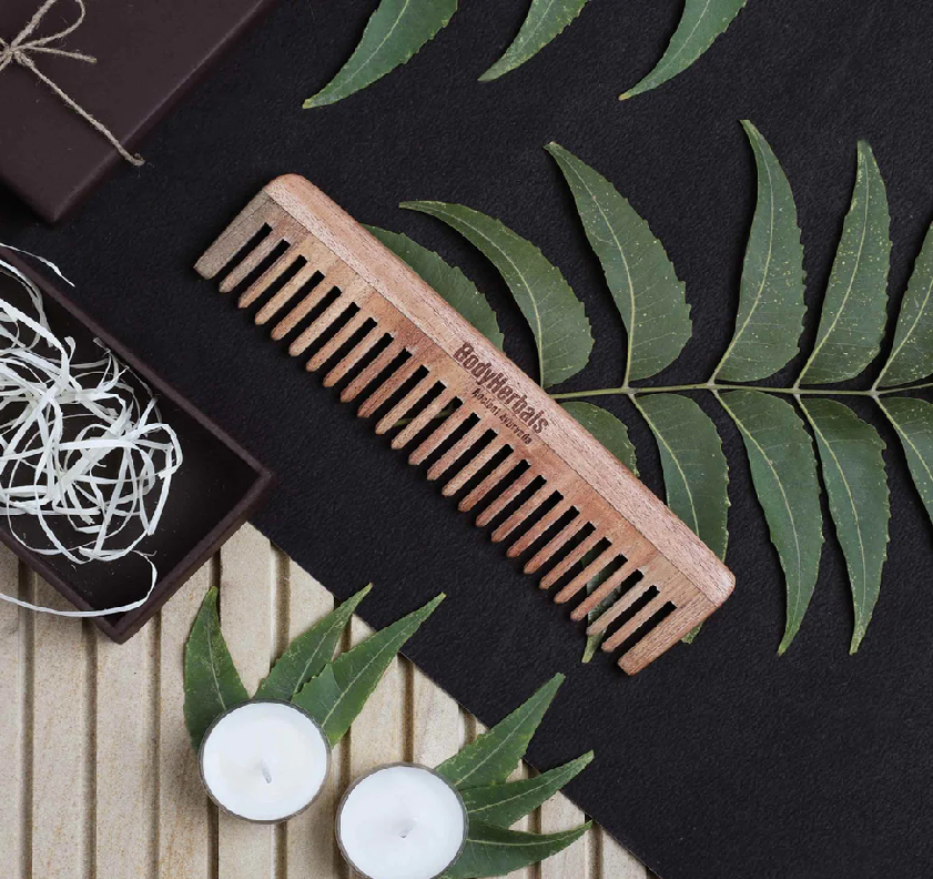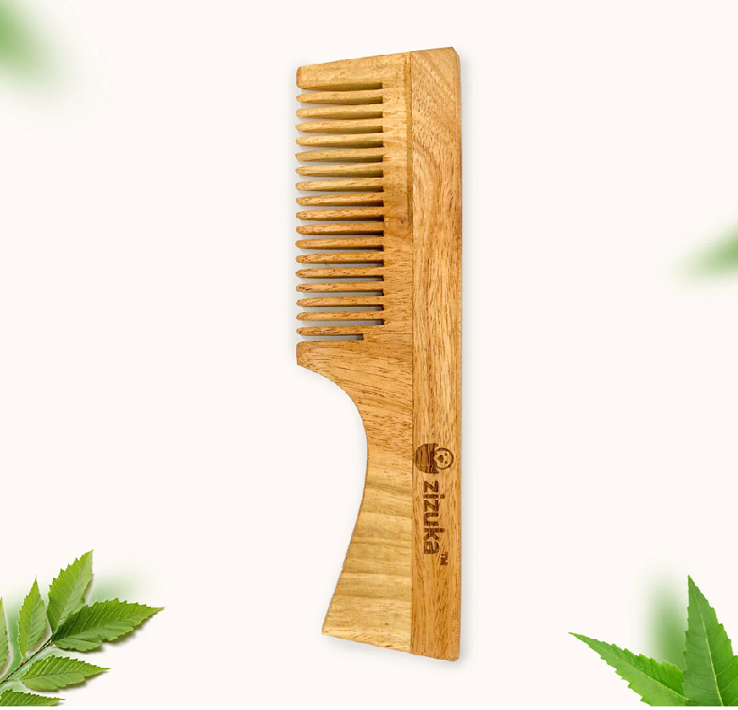 Par de peines de dientes anchos de madera de Neem puro | Ideal para desenredar y masajear el cuero cabelludo | Salud y crecimiento natural del cabello de la India