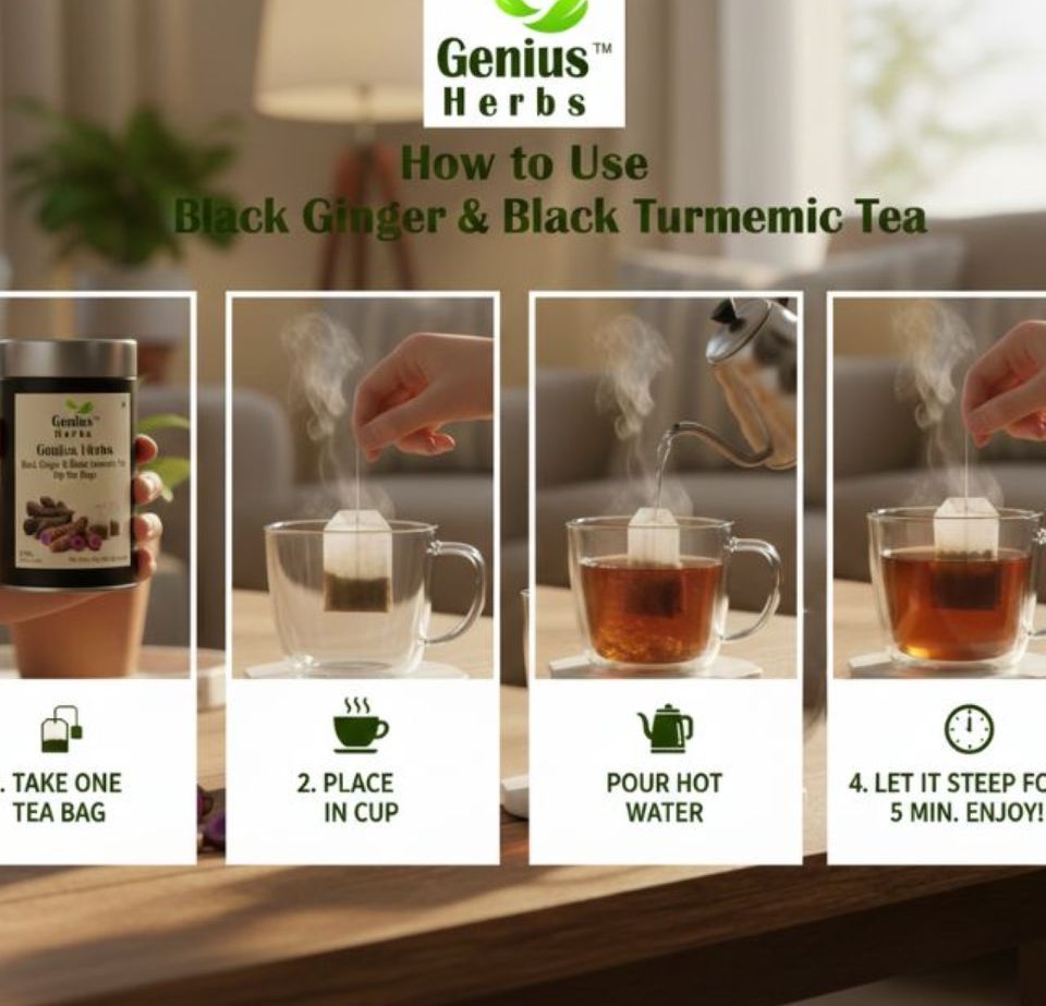 Té de Jengibre Negro y Cúrcuma de Origen Puro, Bolsitas de Té Especiadas Tradicionales, Infusión Botánica Natural, Apoyo Energético Diario, a Granel