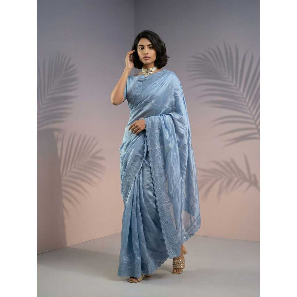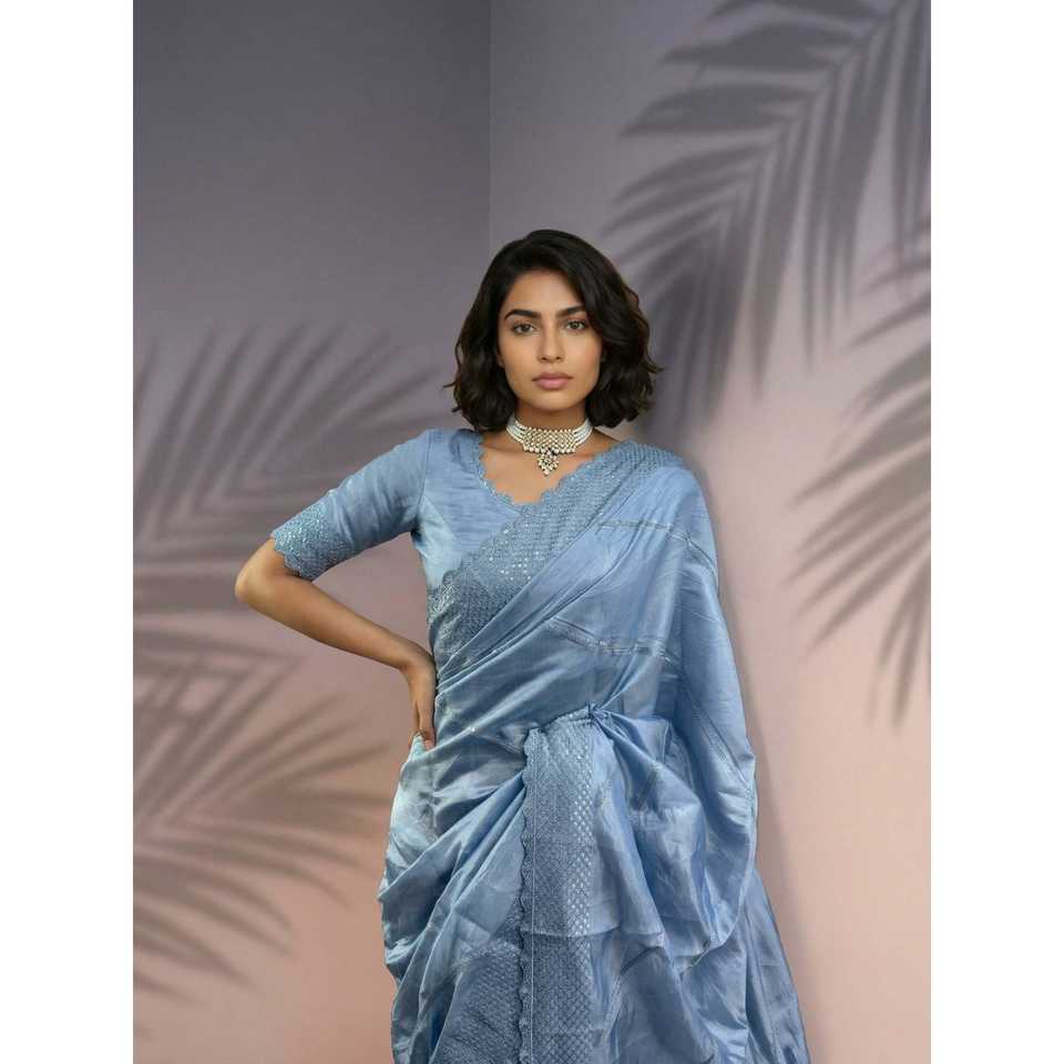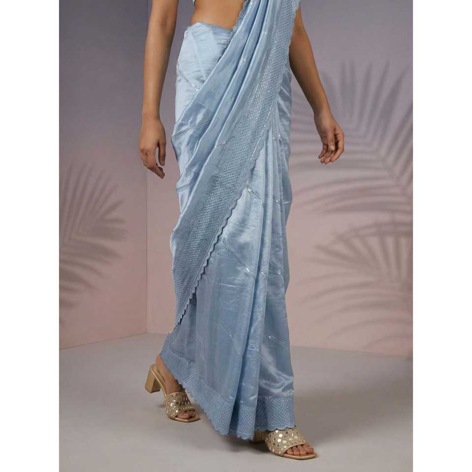 Sari de satén de frambuesa puro con trabajo Leheriya y borde de lentejuelas, sari de seda festivo ligero con blusa bordada