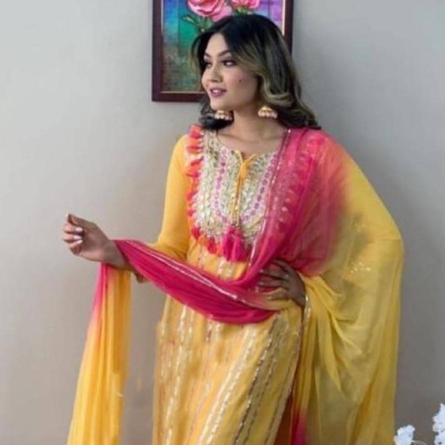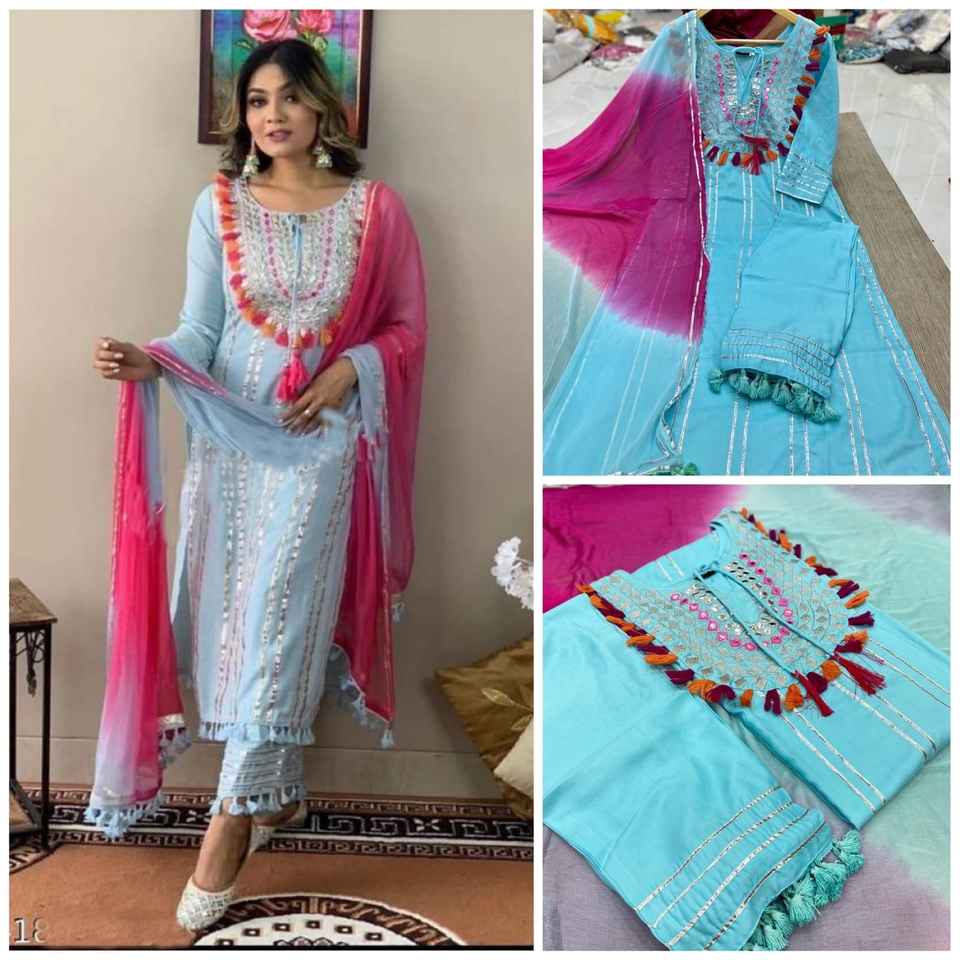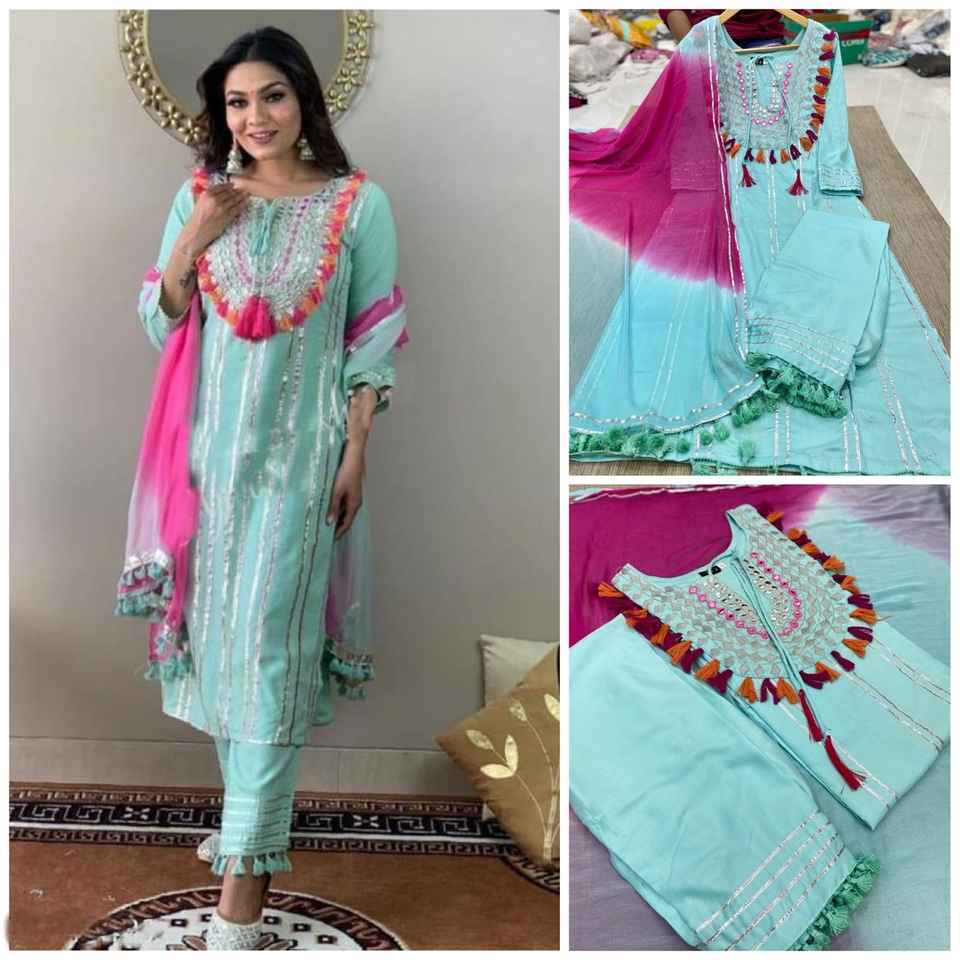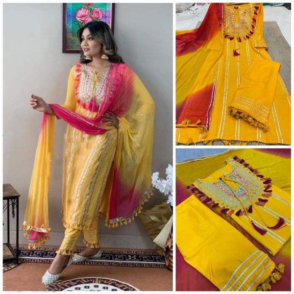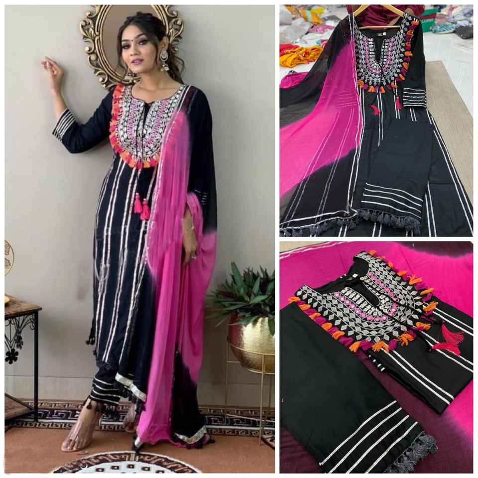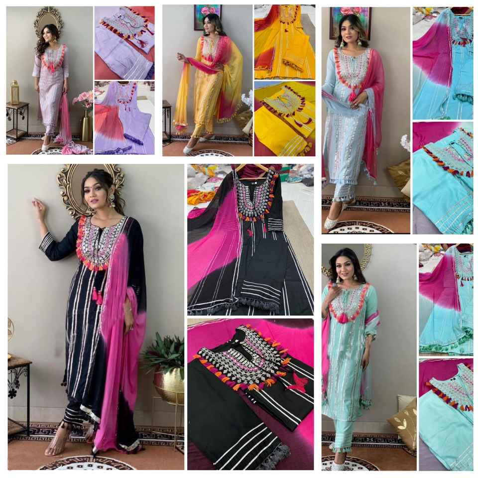 Dupatta-Pantalón de rayón puro de algodón con encaje en Kurta, pantalón de trabajo con hilo, tres conjuntos