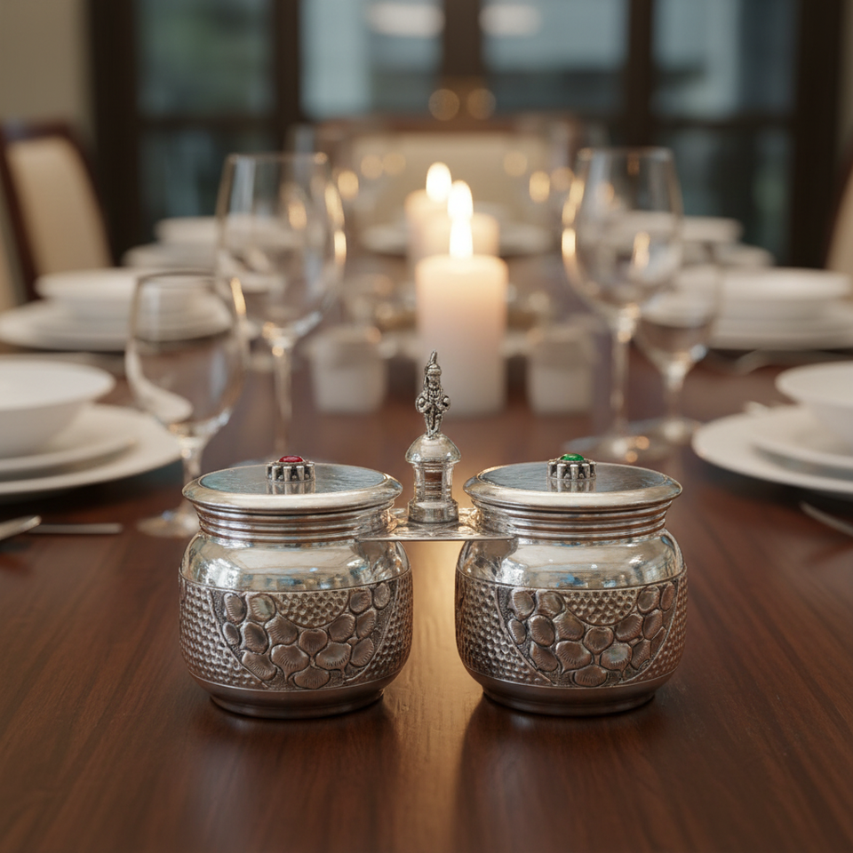 Juego de Recipientes para Kumkum Chawal de Plata Pura con Tapa, Accesorio Tradicional Indio para Pooja, Artículo Religioso Hecho a Mano para el Templo del Hogar