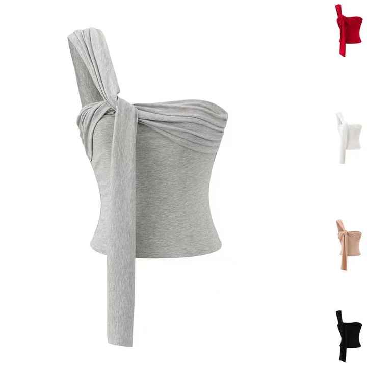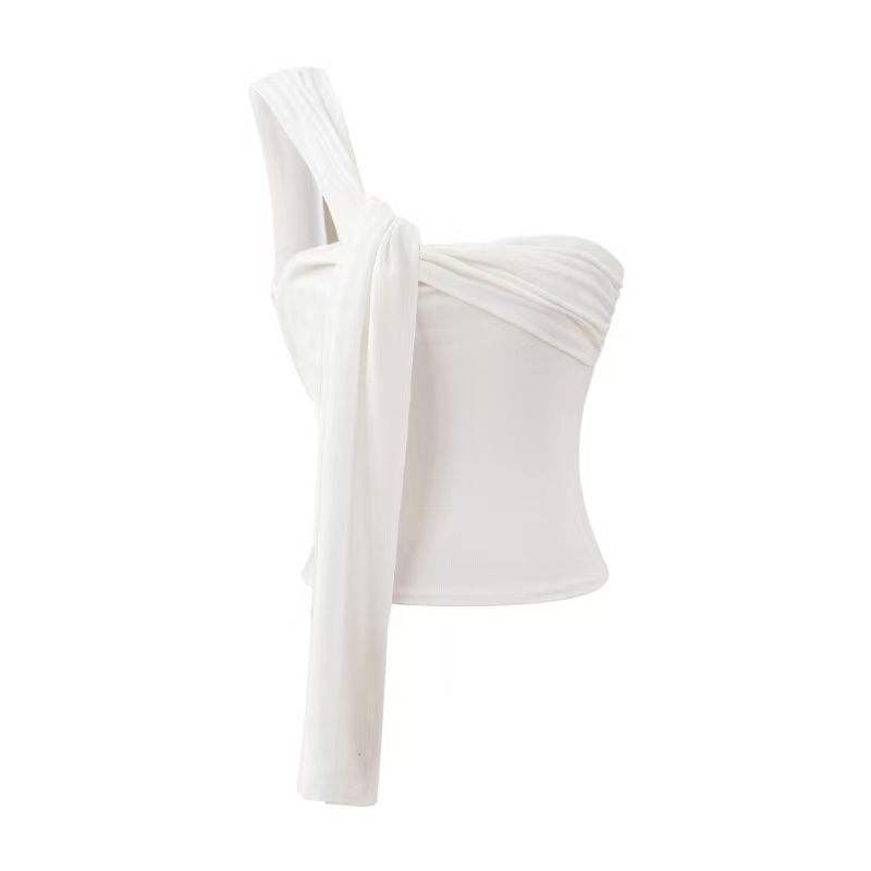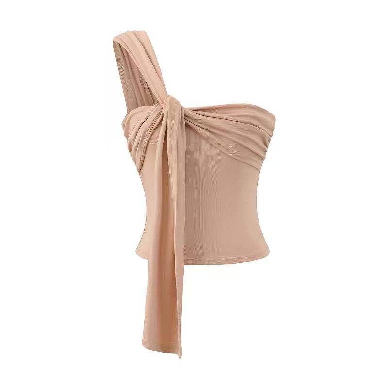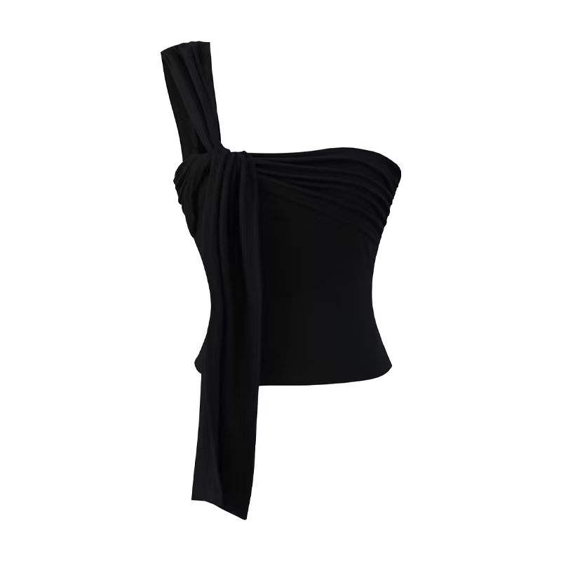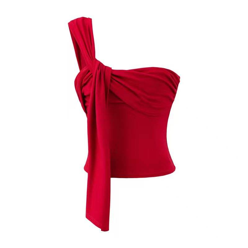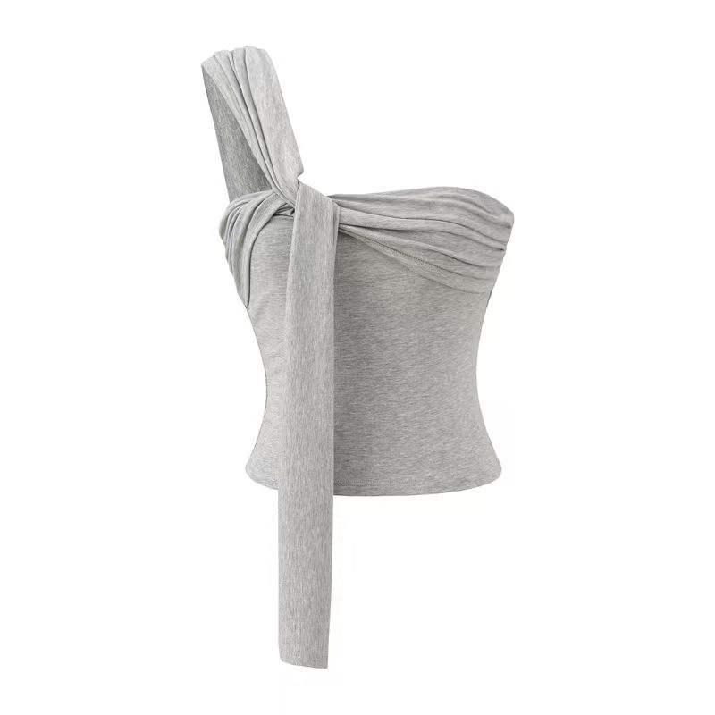 Camisola Corta Irregular Pure Spice Girls para Mujer, Top Plisado Ajustado de Verano para Usar como Prenda Exterior