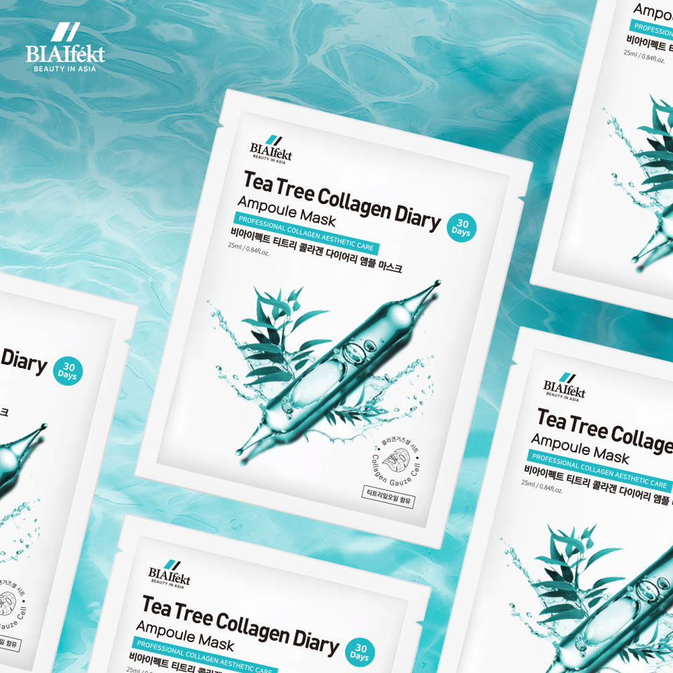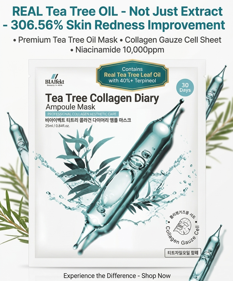 Mascarilla Facial Coreana Blanqueadora Antiacné con Aceite Puro de Árbol de Té 40% Terpinen-4-ol y Colágeno, Ampolla de Gasa para 30 Días, OEM K-Beauty