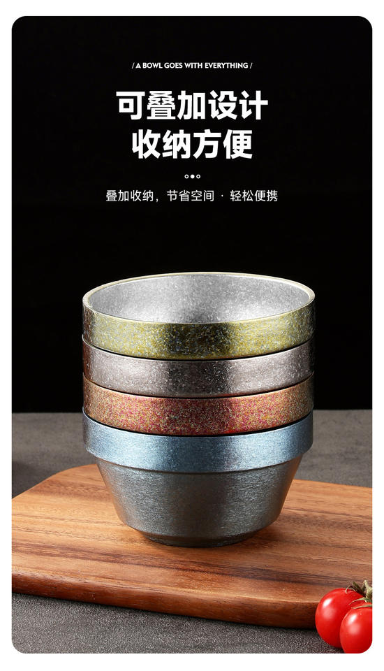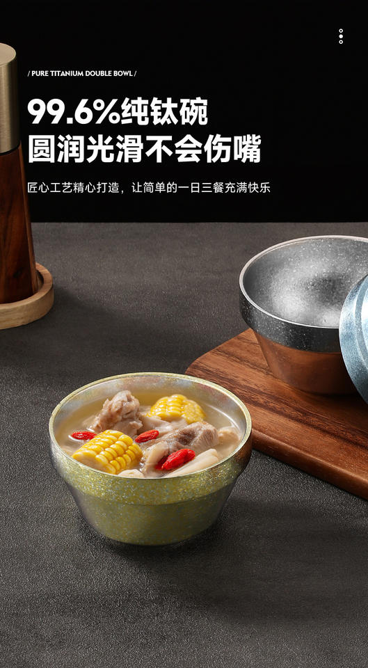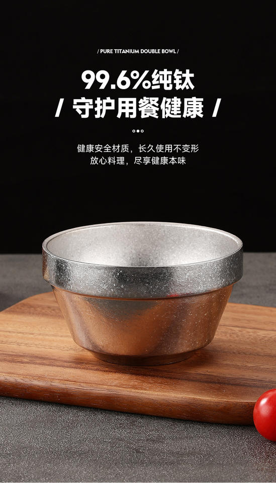 Tazón de titanio puro • Aislamiento de doble capa • Anti-quemaduras • Ligero y duradero