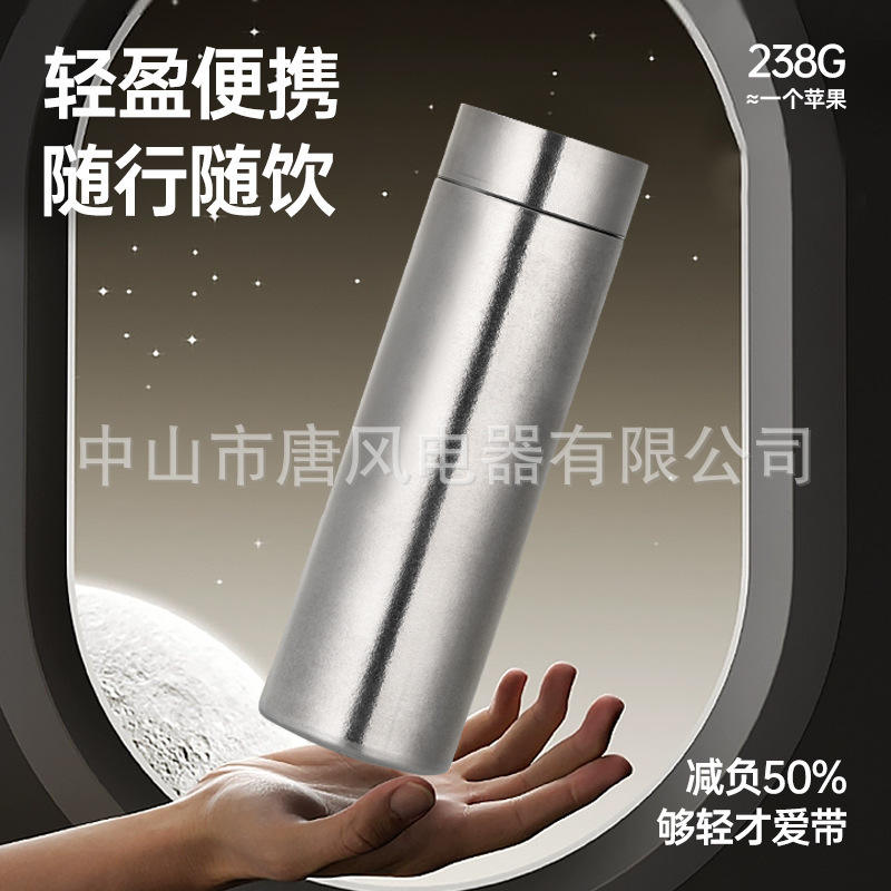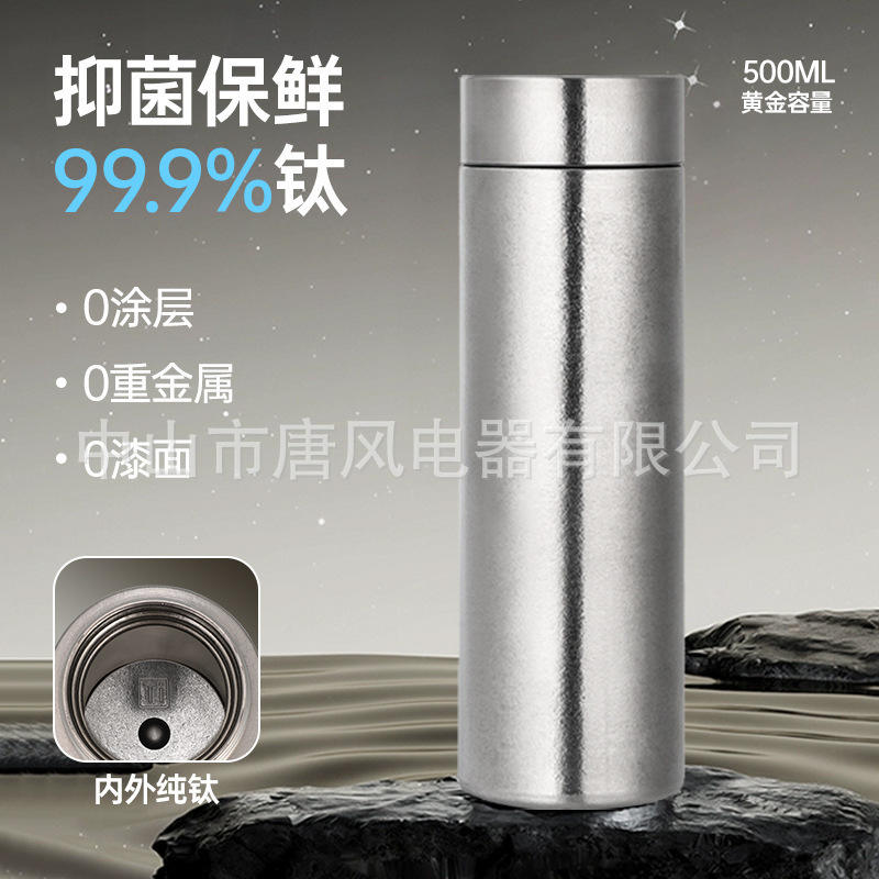 Botella de Agua con Aislamiento al Vacío de Doble Pared de Titanio Puro, Tapa Plateada con Rosca, Embalaje en Caja de Regalo, Termo
