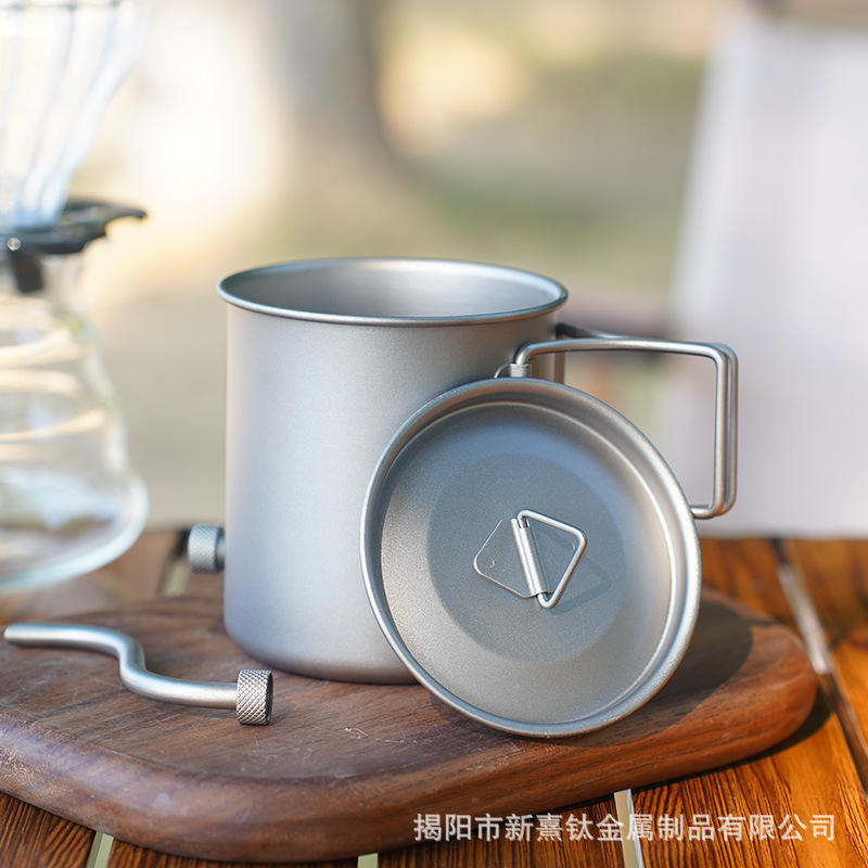 Tetera de Titanio Puro con Tapa, Taza de Café y Té para Camping, Portátil, de Una Sola Capa, Juego de Tazas de Titanio para Exteriores