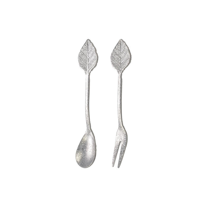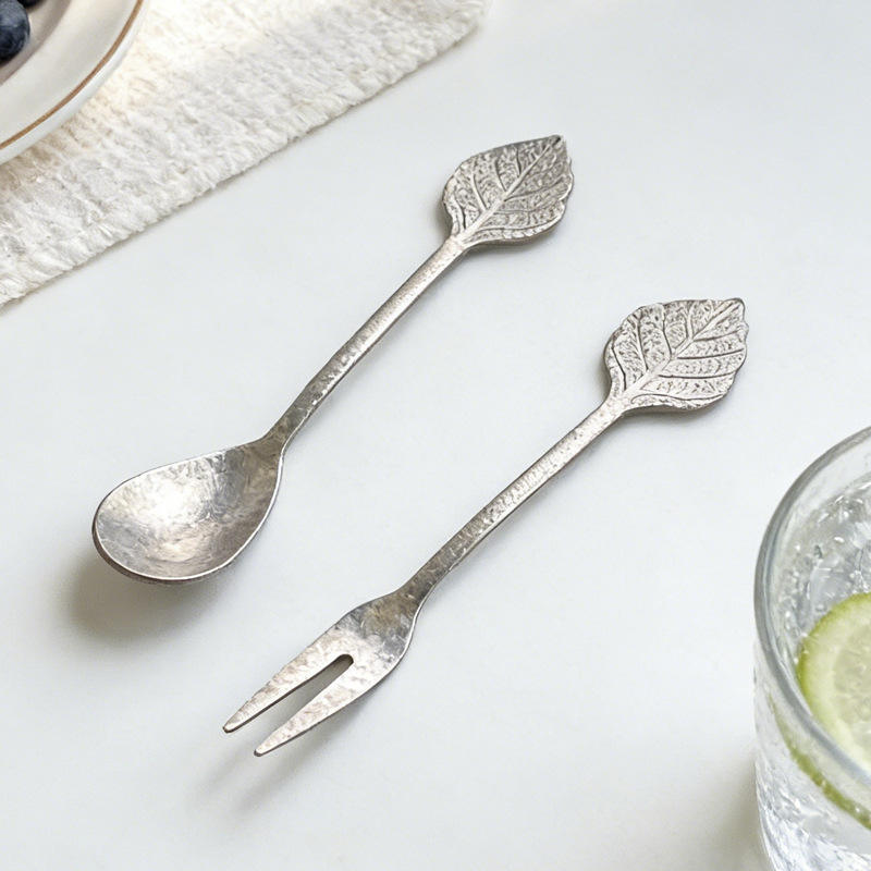 PT033 Cuchara y Tenedor de Titanio Puro con Diseño de Hoja y FrutaNúmero de pieza