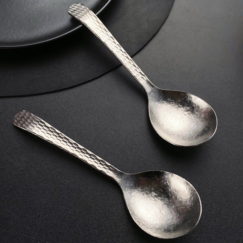 Cuchara de titanio puro con textura martillada, cabeza grande, ligera, ecológica, para hotel, hogar, camping al aire libre