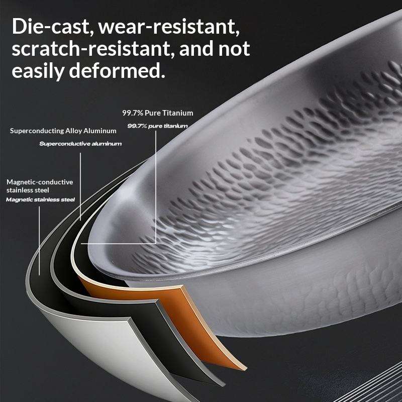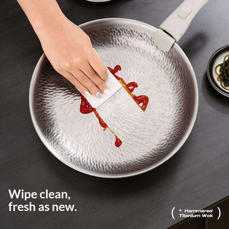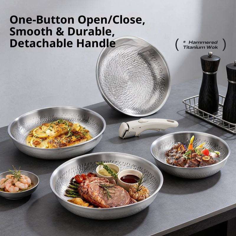 Sartenes para carne de titanio puro de 20-28 cm con base de acero inoxidable, wok antiadherente de titanio puro, sartén para saltear sin flúor.