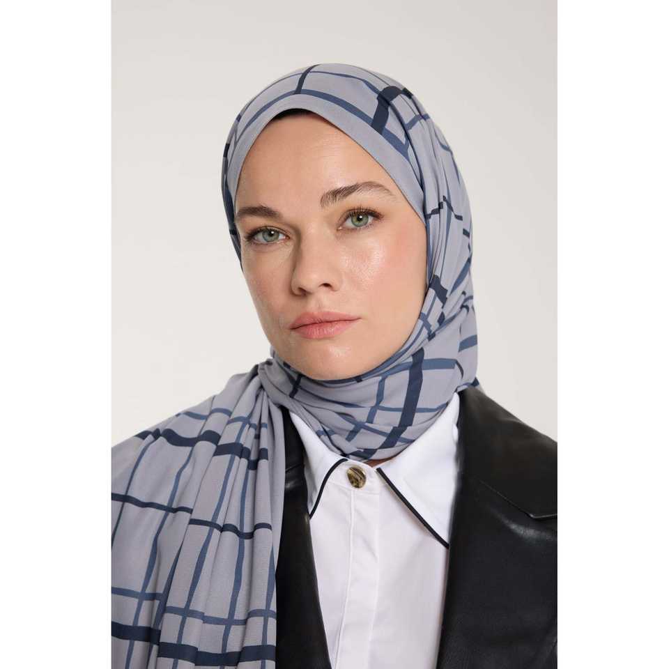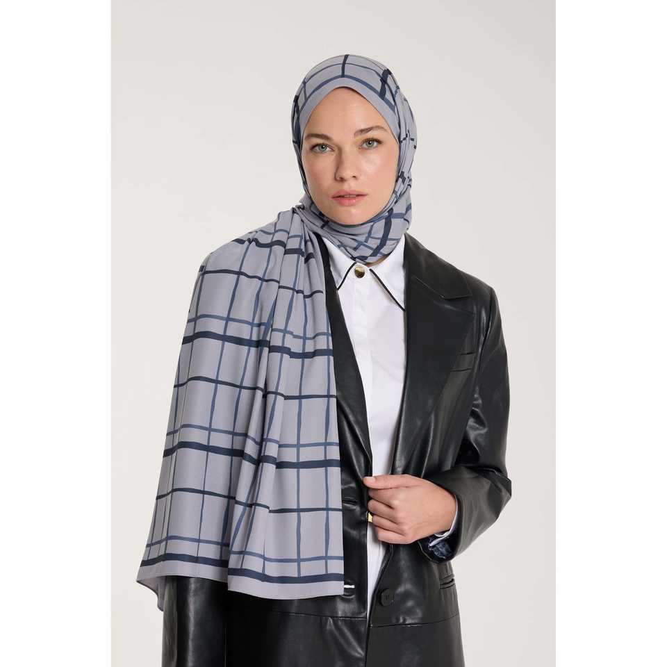 Pañuelo Cuadrado con Estampado de Tono Puro, Plateado y Azul Marino, Ligero, para Mujer, 100% Poliéster, Impresión Digital
