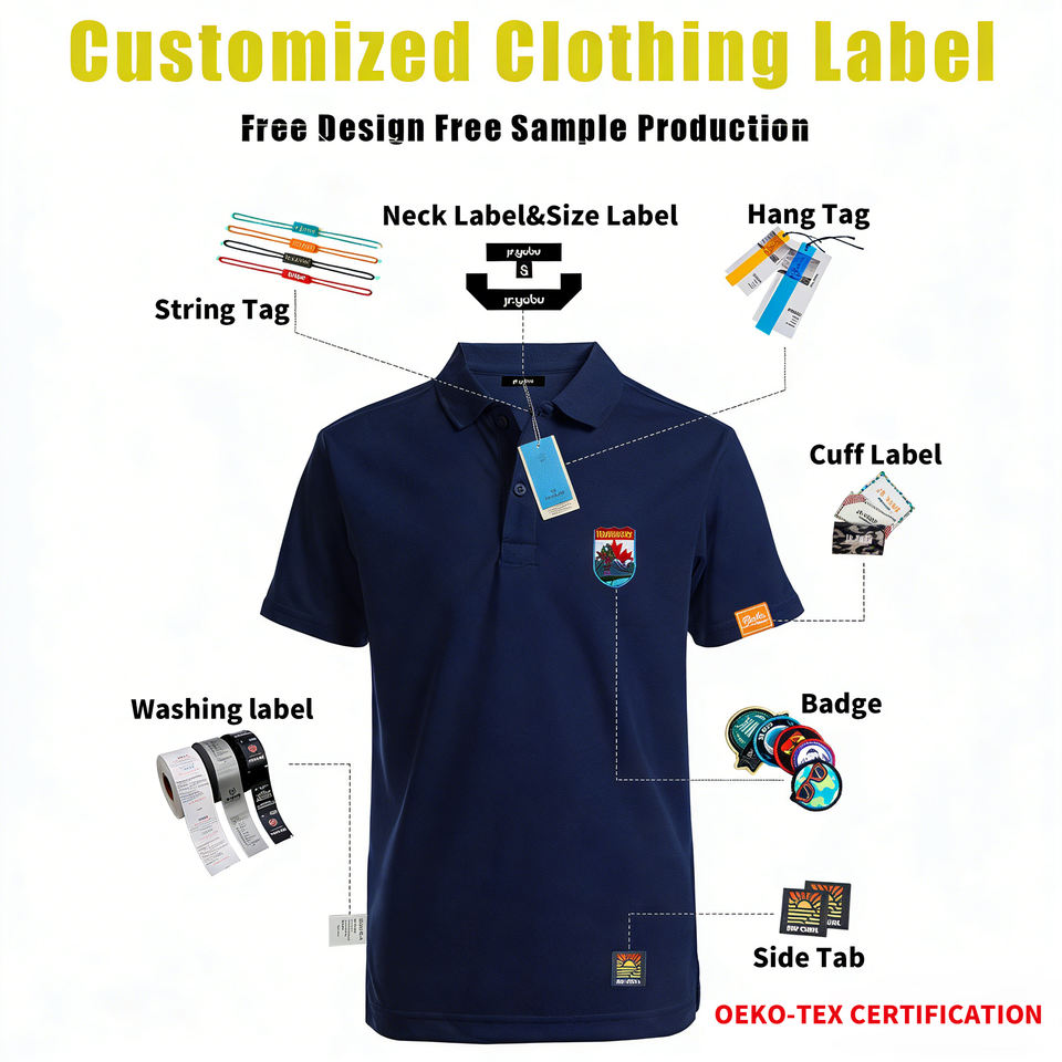 Categorías de Productos:Etiqueta Principal (Identidad de Marca), Etiqueta de Talla, Etiqueta de Cuidado