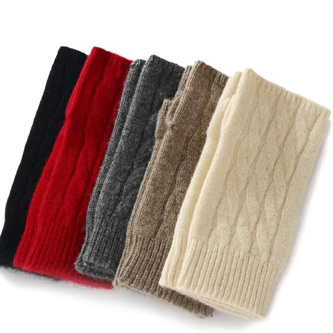 Manoplas de Punto de Lana Pura, Guantes sin Dedos para Otoño e Invierno, Tejido de Cable sin Costuras, Cómodos y Cálidos, 100% Lana, con Orificio para el Pulgar, Unisex