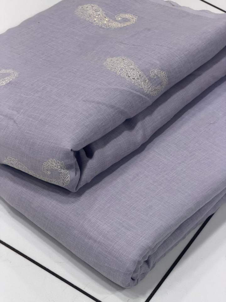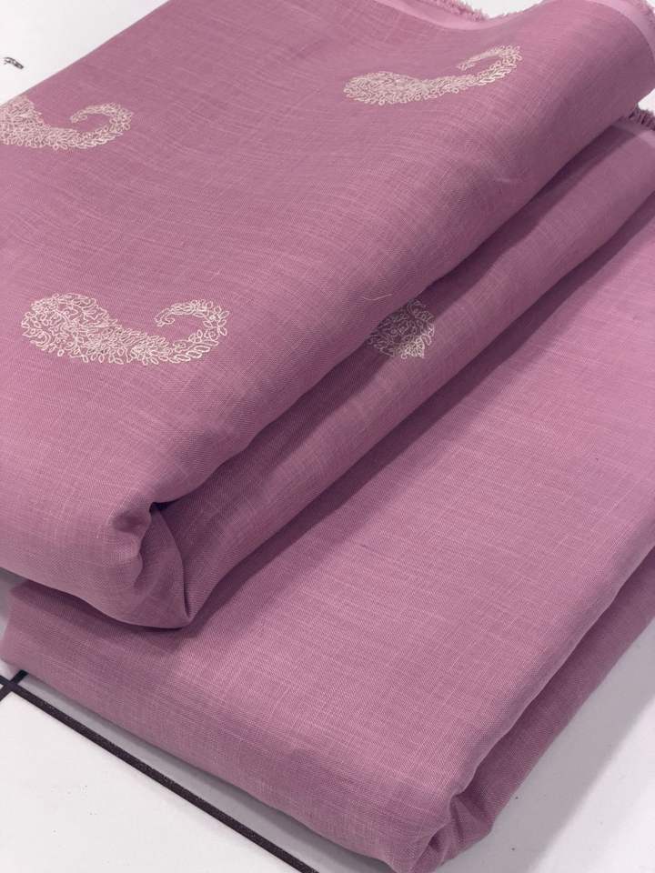 Tela de lino puro con hilo blanco y secuencia de buta