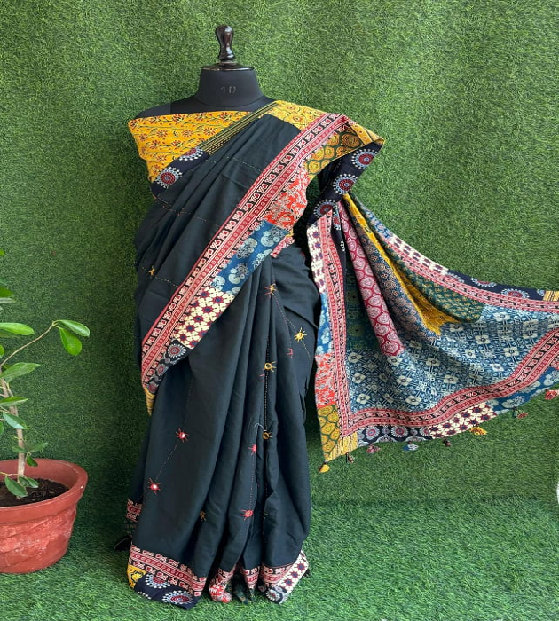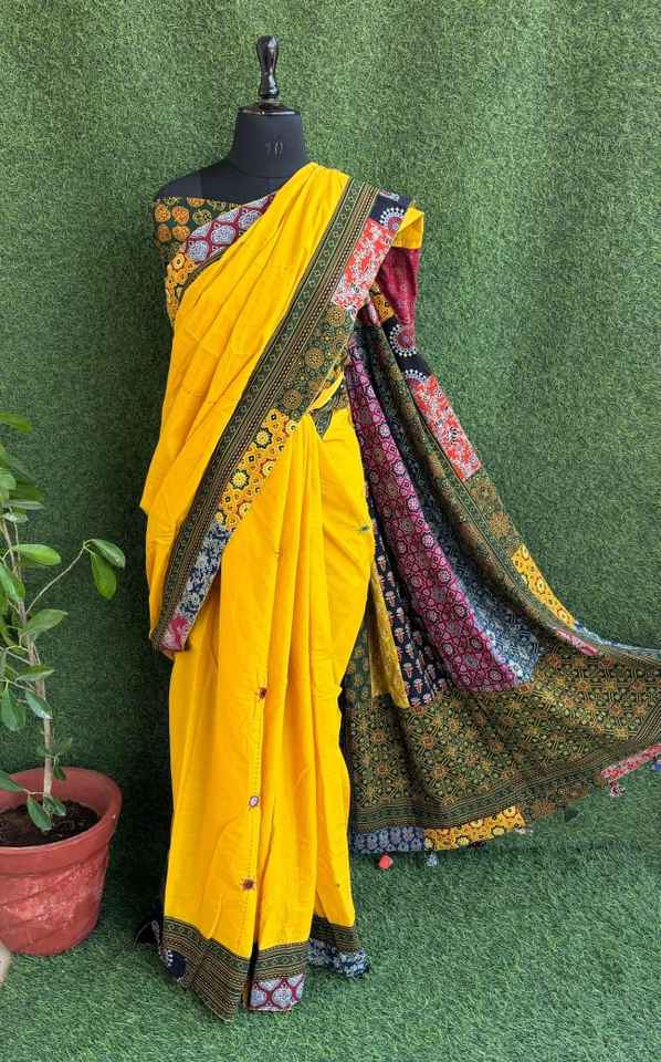 Nombre del producto:Puro algodón Mul Saree con parche y espejo trabajo con borlas hechas a mano