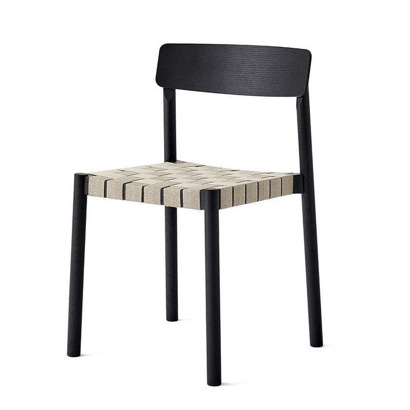 Sillas de Comedor Apilables Estilo Nórdico Purelyfeel, Silla de Madera Maciza Simple para el Hogar, Silla de Ocio con Correa Tejida, Modelo Betty