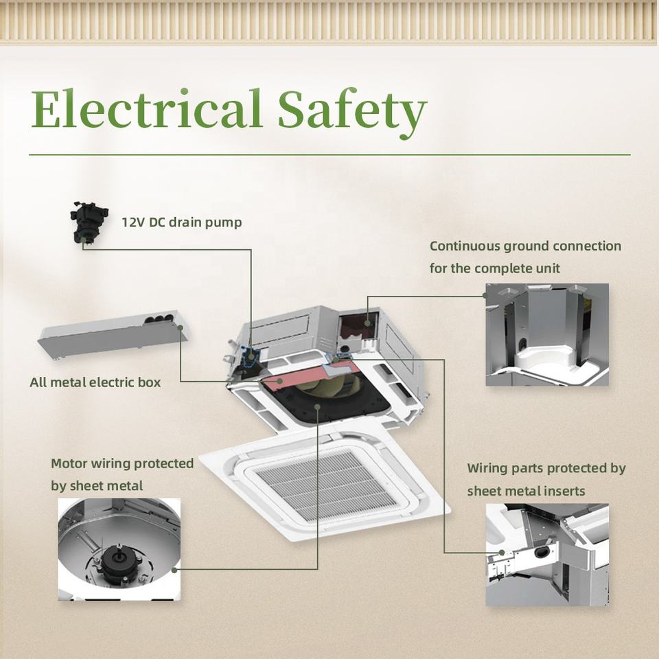 Unidad de Aire Acondicionado Cassette Inverter Puremind R32 48K 48000Btu T3 con Bomba de Calor 380V Tipo Cassette FCU para Uso Comercial Ligero