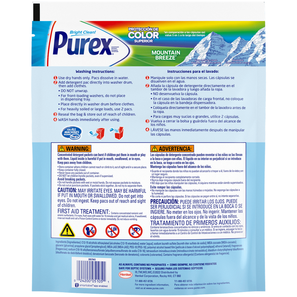 Purex Detergente para Ropa 4 en 1 Pacs Mountain Breeze 70 Pacs