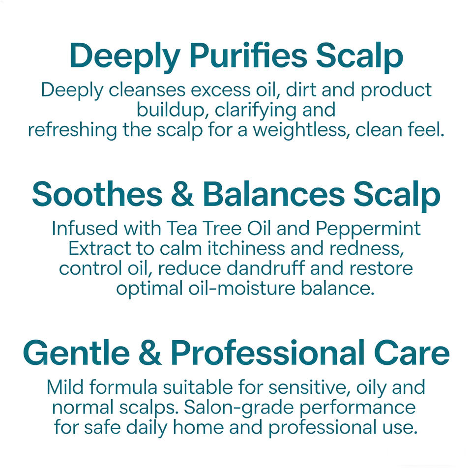 Champú Purificante para el Cuero Cabelludo con Aceite de Árbol de Té y Extracto de Menta, Calma la Irritación, Clarifica, Refresca, Cuidado del Cuero Cabelludo, Control de Grasa