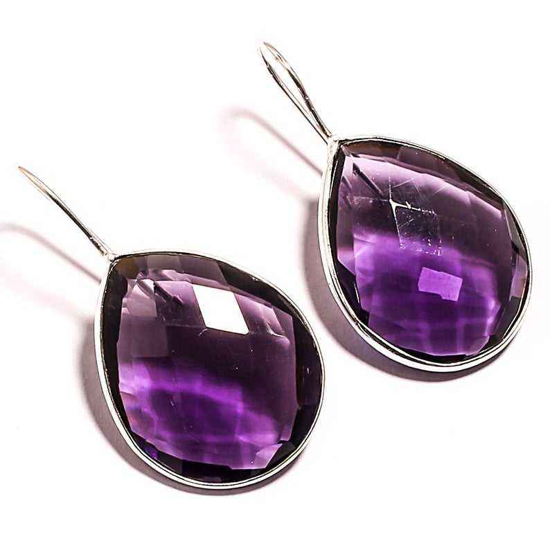 Pendientes de Plata de Ley 925 con Gema de Amatista Púrpura, Diseño de Pera, Estilo Cristiano, para Mujer, Ideales para Bodas y Fiestas