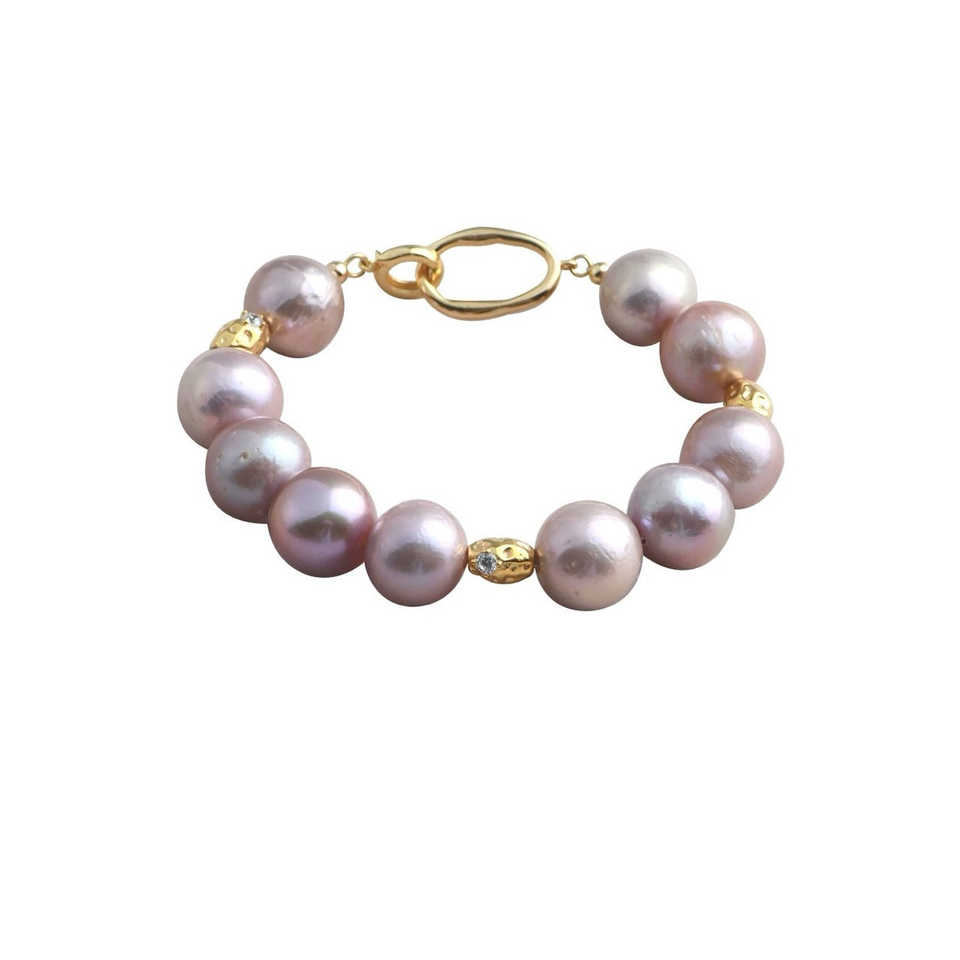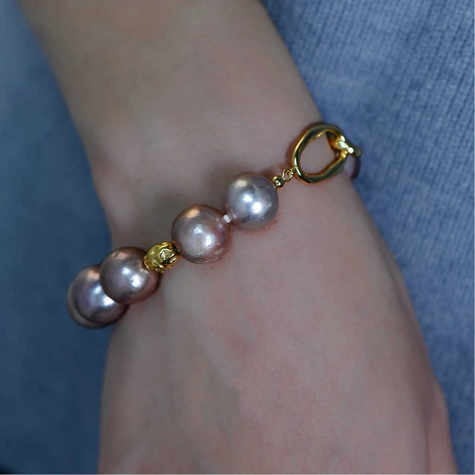 Pulsera de Perlas Grandes con Diseño Barroco Morado, Textura Metálica Rara, Diseño Impresionante