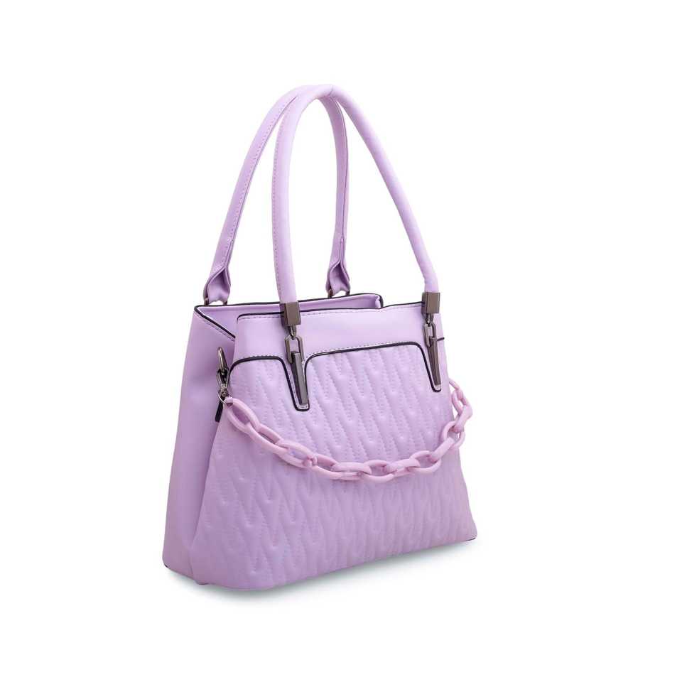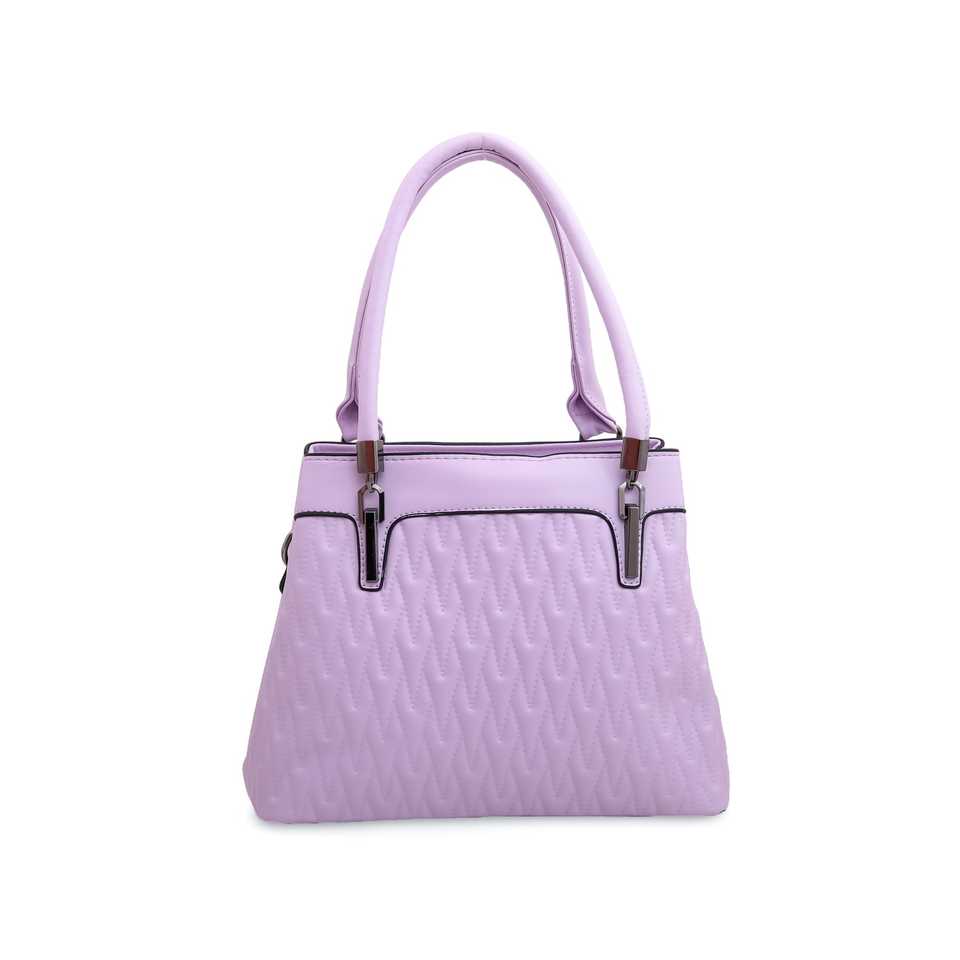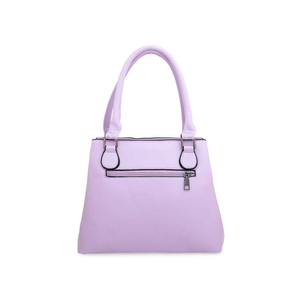 Bolso de mano informal púrpura con estampado de animales de leopardo decoración de remaches cierre de cremallera P35883 estilo formal PU/forro de poliéster