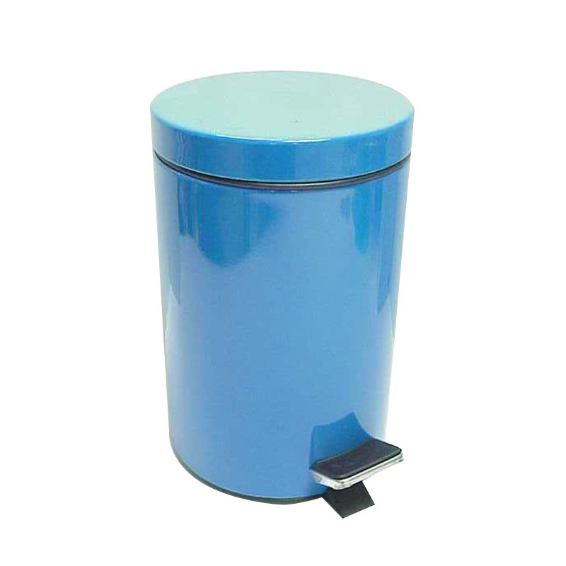 Cubo de basura de metal de color púrpura con pedal